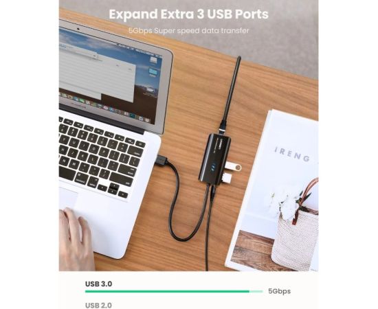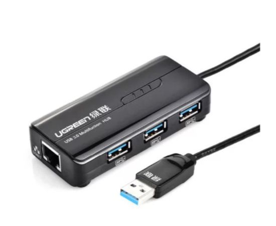 Адаптер сетевой UGreen 20265 USB 3.0 Hub with Gigabit Ethernet Adapter черный