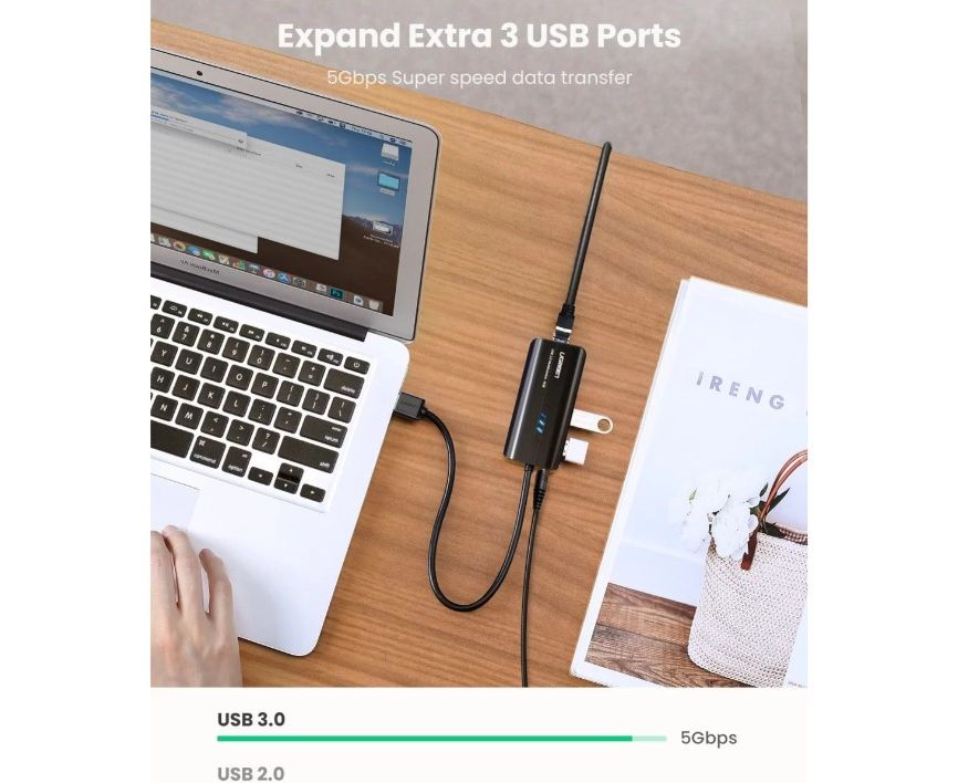 USB-хаб Ethernet позволяет подключать к вашему ПК или ноутбуку до 3 устройств с поддержкой USB A, например, внешний жесткий диск, USB флэш-накопитель, мышь, клавиатуру, USB наушники, динамики, USB камеру и т. д.