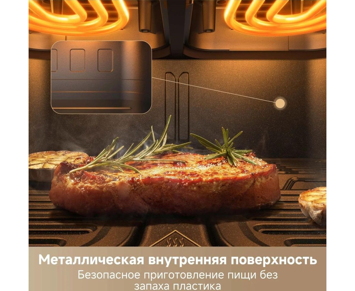 Гибкая система из двух зон, переключение на одну большую зону приготовления. Две независимые системы нагрева. Цельнометаллический внутренний корпус позволяет избежать запаха пластика во время нагрева . Диапазон температур 40-230°C позволяет приготовить блюда с точным контролем температуры.