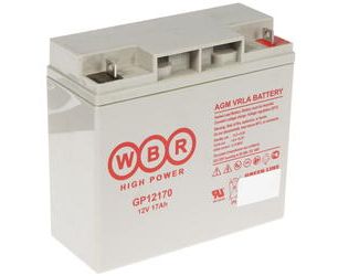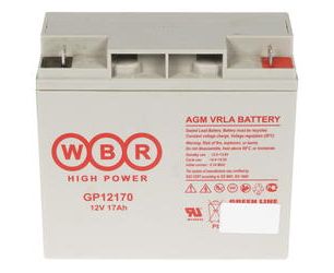 АКБ для ИБП 12В 17Ач WBR GP12170 F2, 68W/cell, 204 Whr, 5.6 кг, (ШхГхВ) 181х76х167 мм (167 с клеммами)