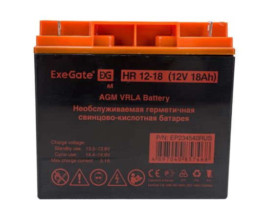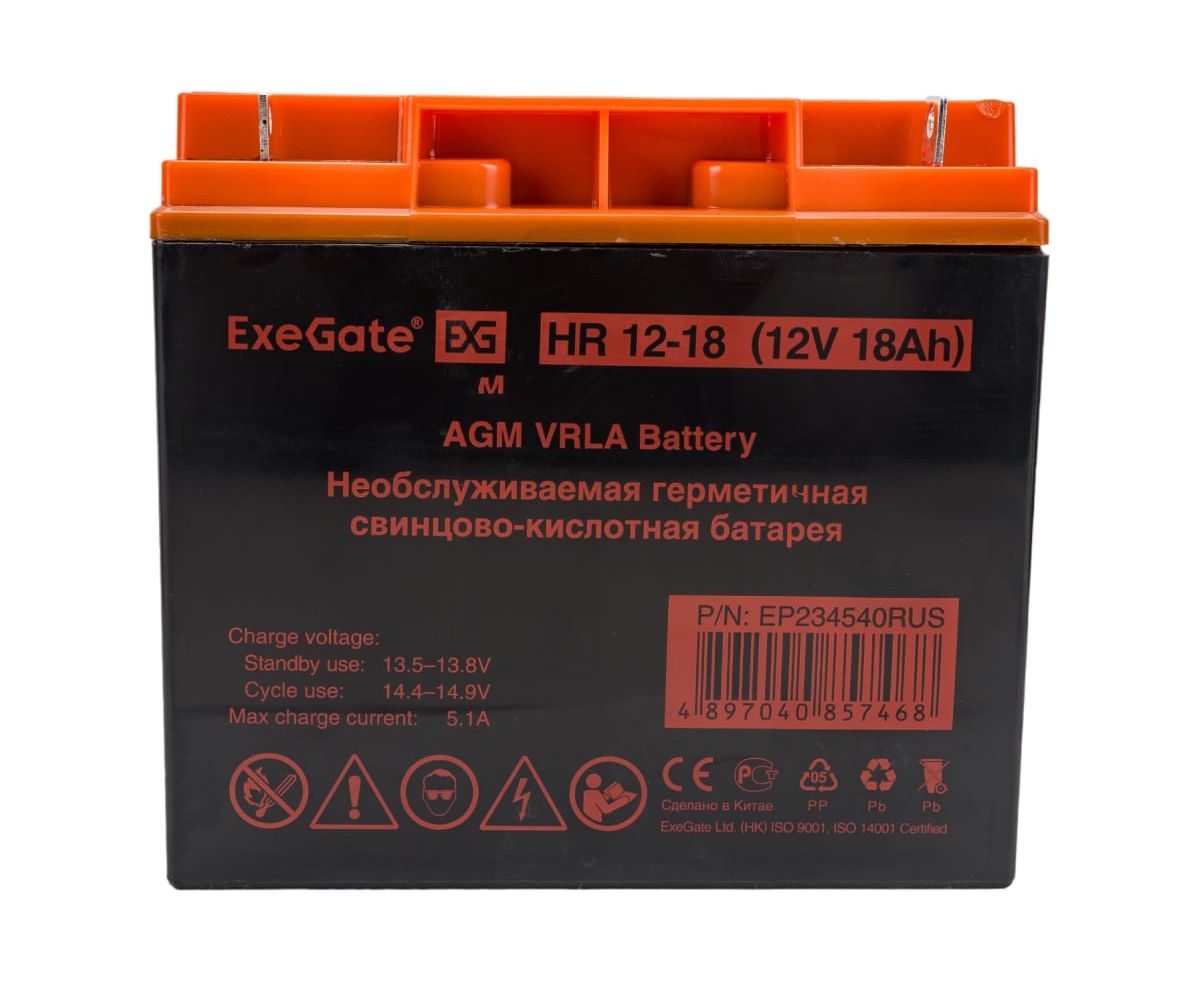 АКБ ExeGate HR 12-18 (234540) 12V 18Ah, клеммы F3 болт М5 с гайкой