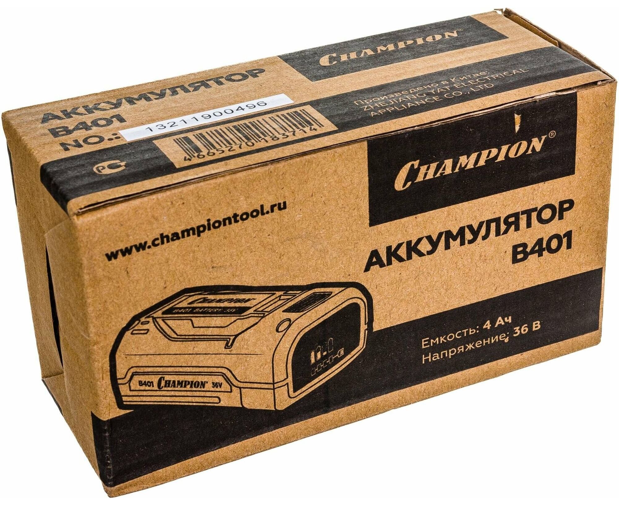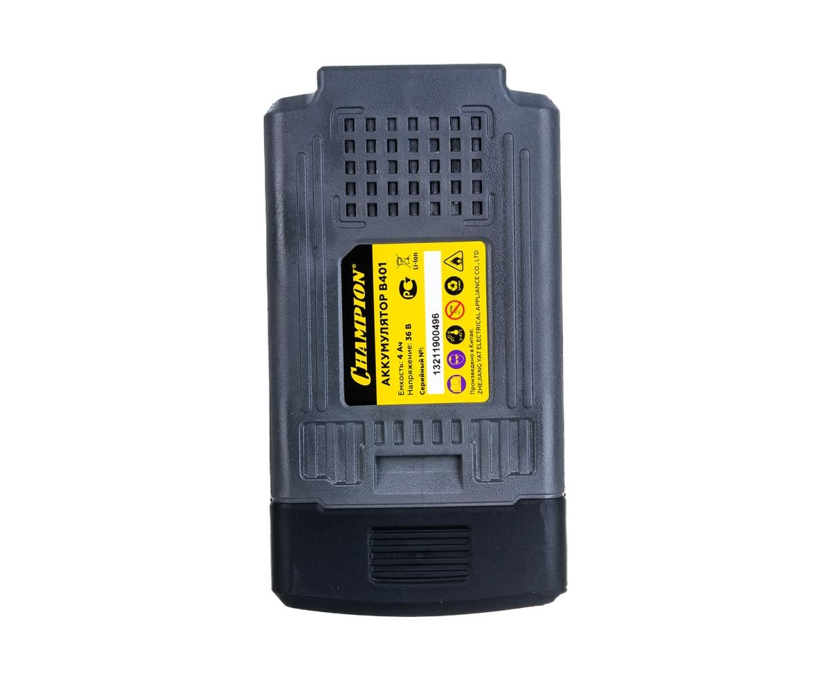 Аккумулятор (36 В, 4 Ач) CHAMPION B401 предназначен для аккумуляторного инструмента. Литий-ионная аккумуляторная батарея характеризуется отсутствием "эффекта памяти", ее можно заряжать при любой степени разрядки.