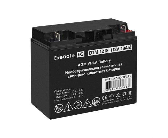 Аккумуляторная батарея ExeGate DTM 1218 (12V 18Ah, клеммы F3 (болт М5 с гайкой) 293360