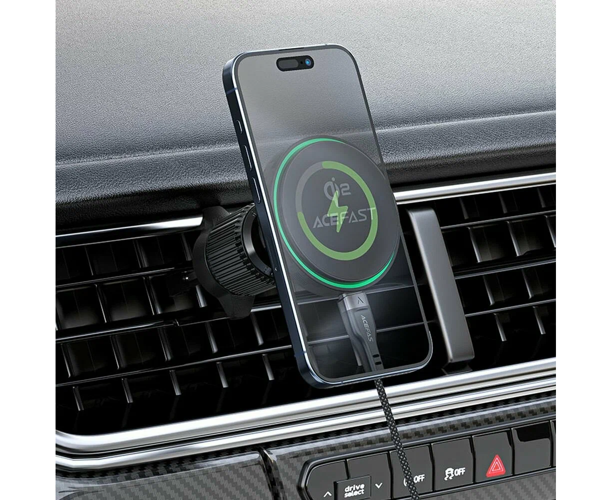 Автодержатель ACEFAST D33 Qi2 Magnetic Wireless Charging Car Holder For Air Vent Black