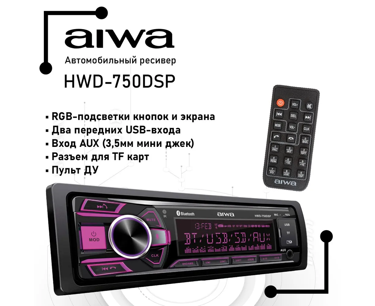 Автомагнитола AIWA HWD-750DSP с поддержкой функции Bluetooth, обеспечивающая качественное и громкое звучание благодаря своей максимальной выходной мощности 4х50 Вт и поддержке форматов FLAC/WAV/WMA/MP3. Встроенный DSP-процессор и 40-полосный эквалайзер позволяют точно настроить звук под ваши предпочтения.