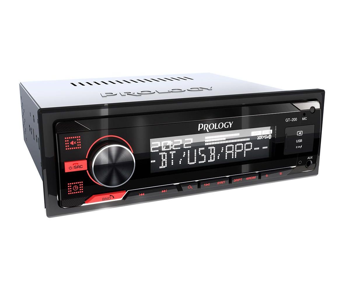 PROLOGY GT-200 — FM SD/USB ресивер с поддержкой беспроводной технологии Bluetooth — это недорогая современная и широкофункциональная автомагнитола стандартного установочного размера 1DIN с минимальной монтажной глубиной в 85 мм.