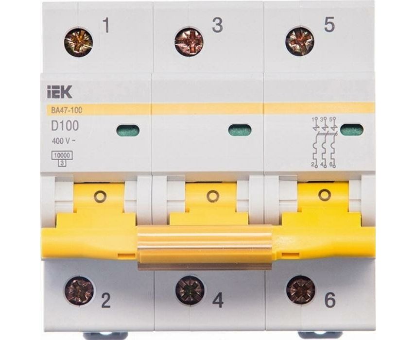 Автоматический выключатель IEK ВА47-100 MVA40-3-035-D 3Р 35А 10кА х-ка D