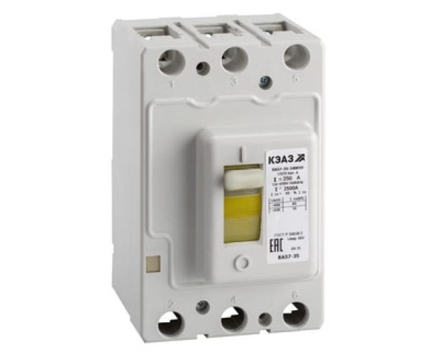 Автоматический выключатель КЭАЗ ВА57-35-340010-250А-2500-690AC-УХЛ3-КЭАЗ 108600 - блочный электротехнический прибор для проведения тока в электроцепи в нормальном режиме. Мгновенно отключает переменный ток при любых отклонениях.