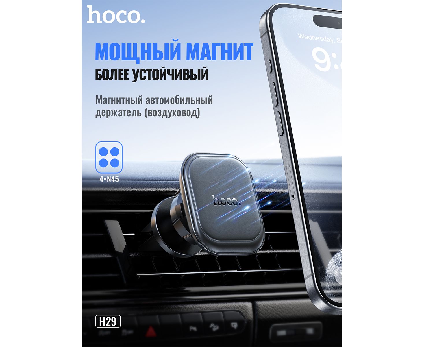 Автомобильный держатель HOCO H29 Brilliant magnetic car holder(air outlet) (черный)