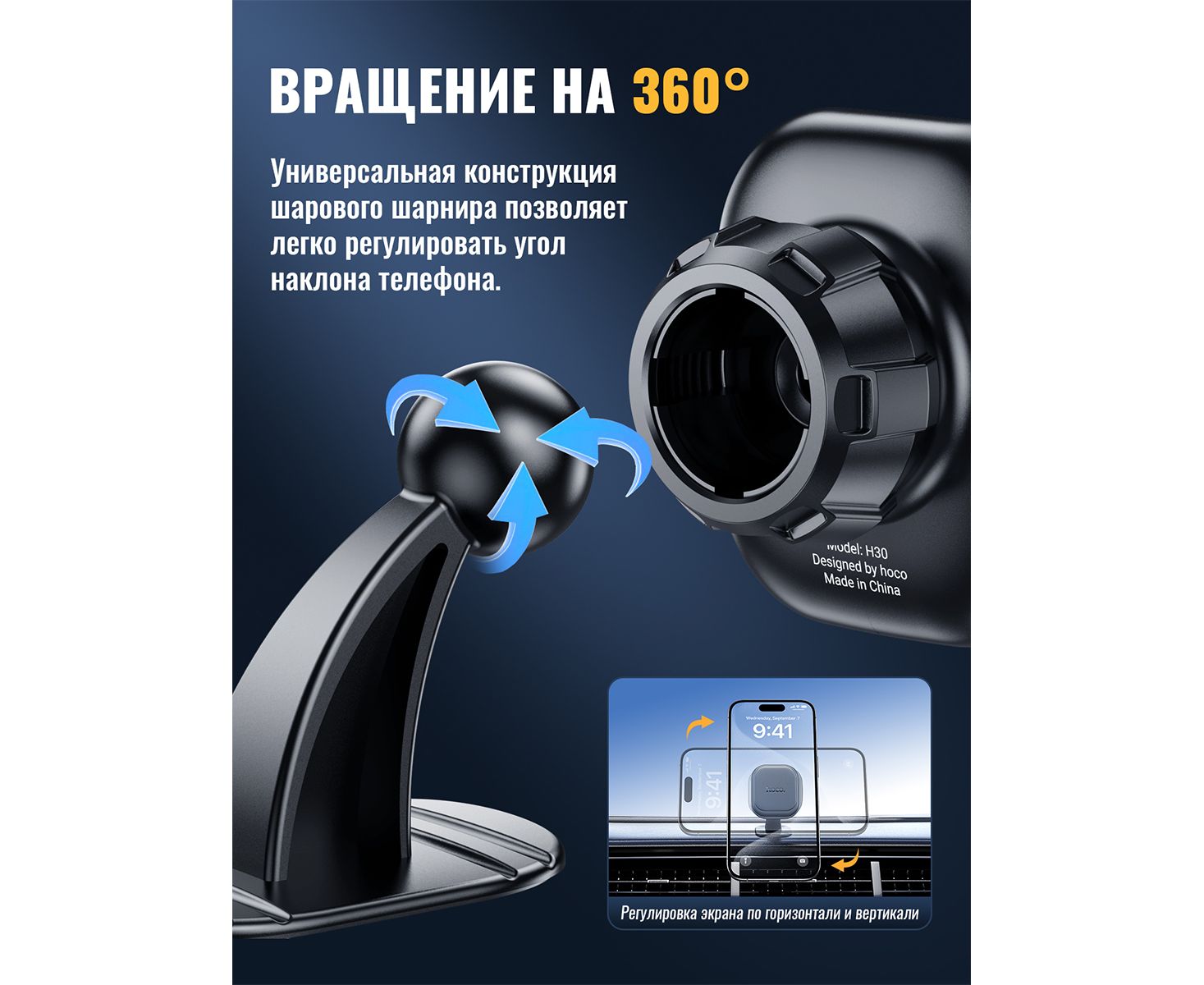 Автомобильный держатель HOCO H30 Brilliant magnetic car holder(center console) (черный)