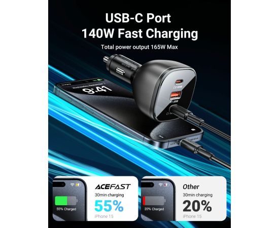 АЗУ ACEFAST B14 165W (2*USB-C+USB-A) 3-port car charger,black