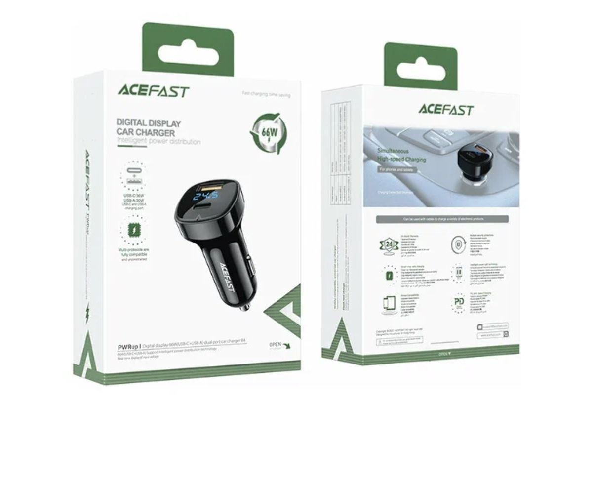 АЗУ ACEFAST B4 digital display 66W(USB-C+USB-A) dual port, black