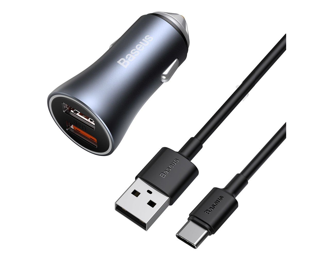 АЗУ Baseus TZCCJD-A0G Golden Contactor Pro Dual Quick Charger Car Charger U+U 40W With Baseus Simple wiring USB For Type-C 5A 1.0m dark gray