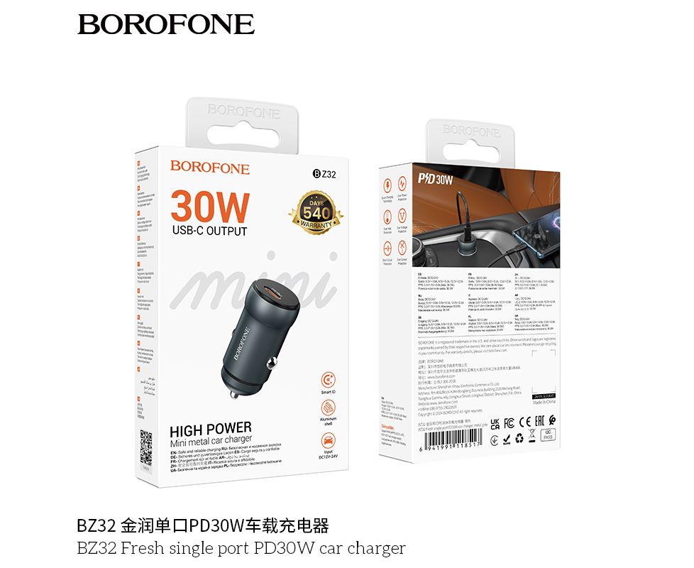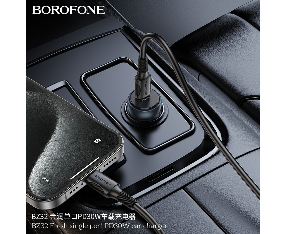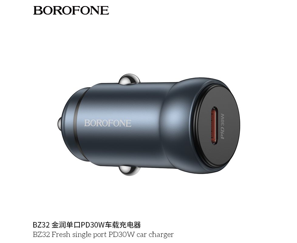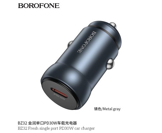 АЗУ BOROFONE BZ32 Fresh single port PD30W car charger (металлический серый)