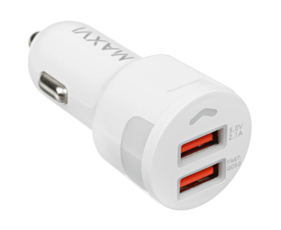 АЗУ Maxvi CCM-522 Plus T white 5.2A, 2xUSB, QC3.0 подсветка синяя
