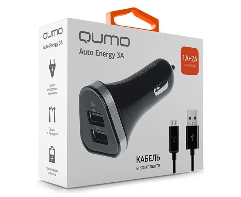 АЗУ QUMO (20734) 3A, 2 USB, 1A+2A черный