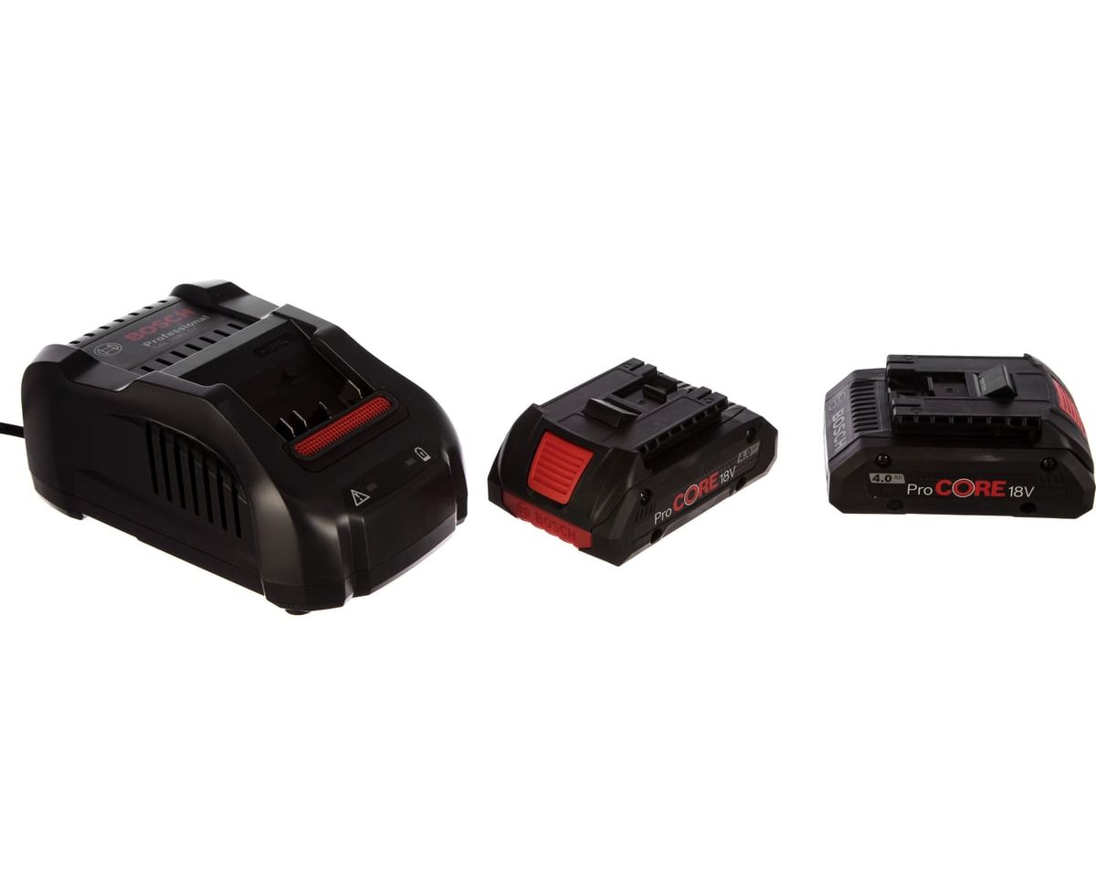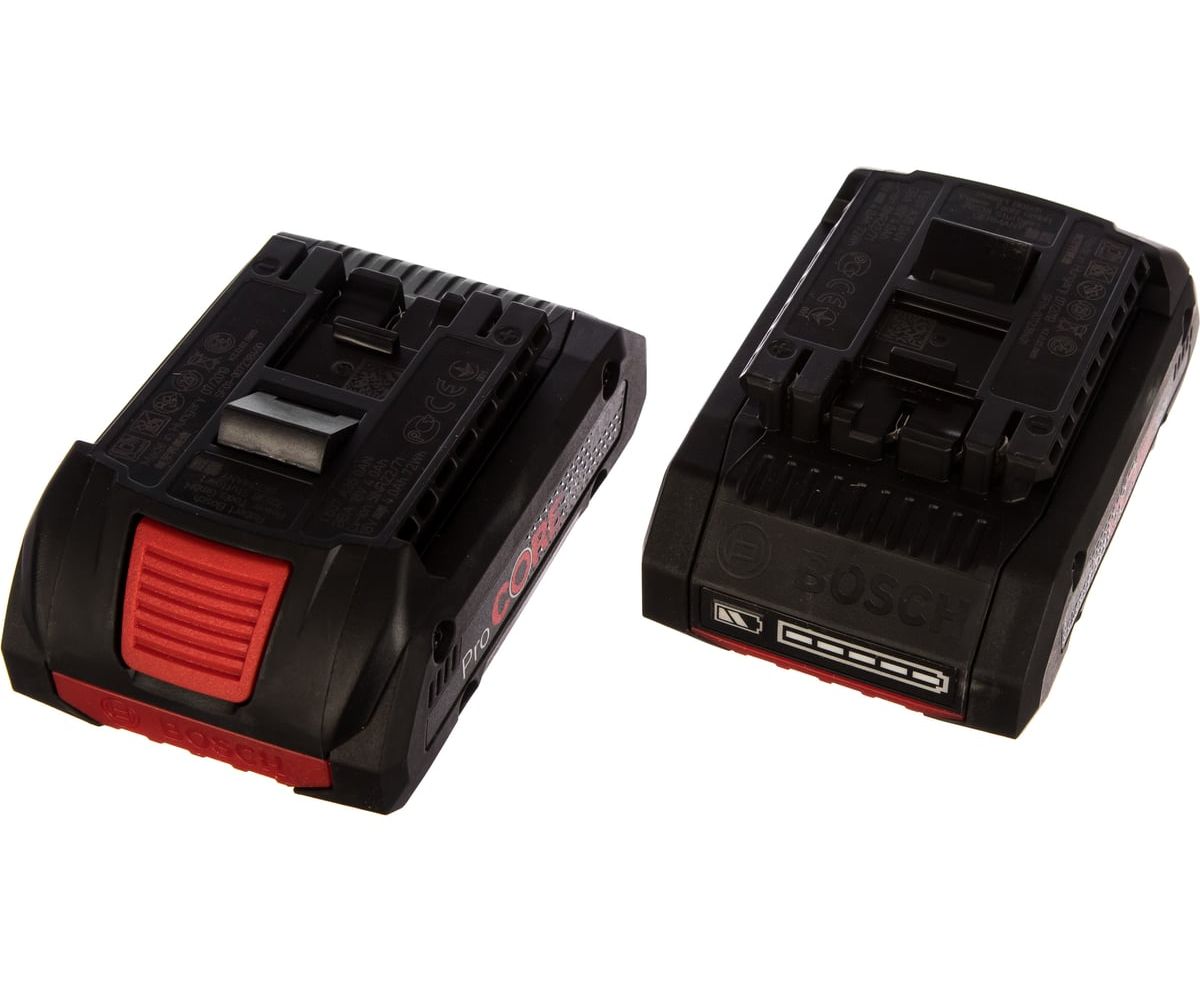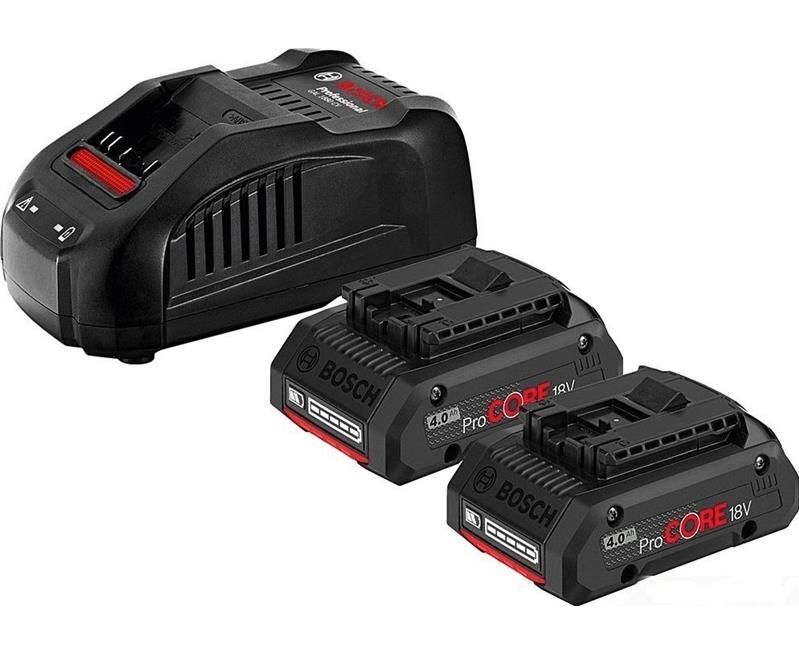 Набор аккумуляторов Li-Ion ProCORE 4 Ач, 18В + ЗУ GAL 1880 CV Professional Bosch 1600A016GF позволяет производить работы в сервисах и на стройках без простоя.