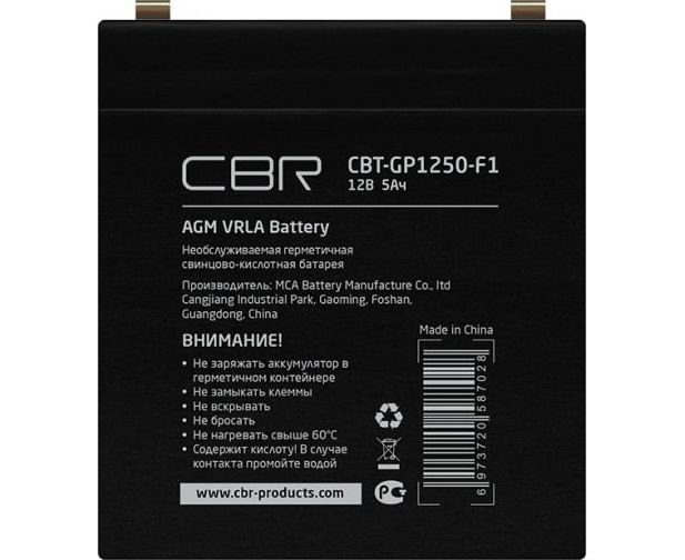Батарея CBR CBT-GP1250-F1 (12В 5Ач), клеммы F1