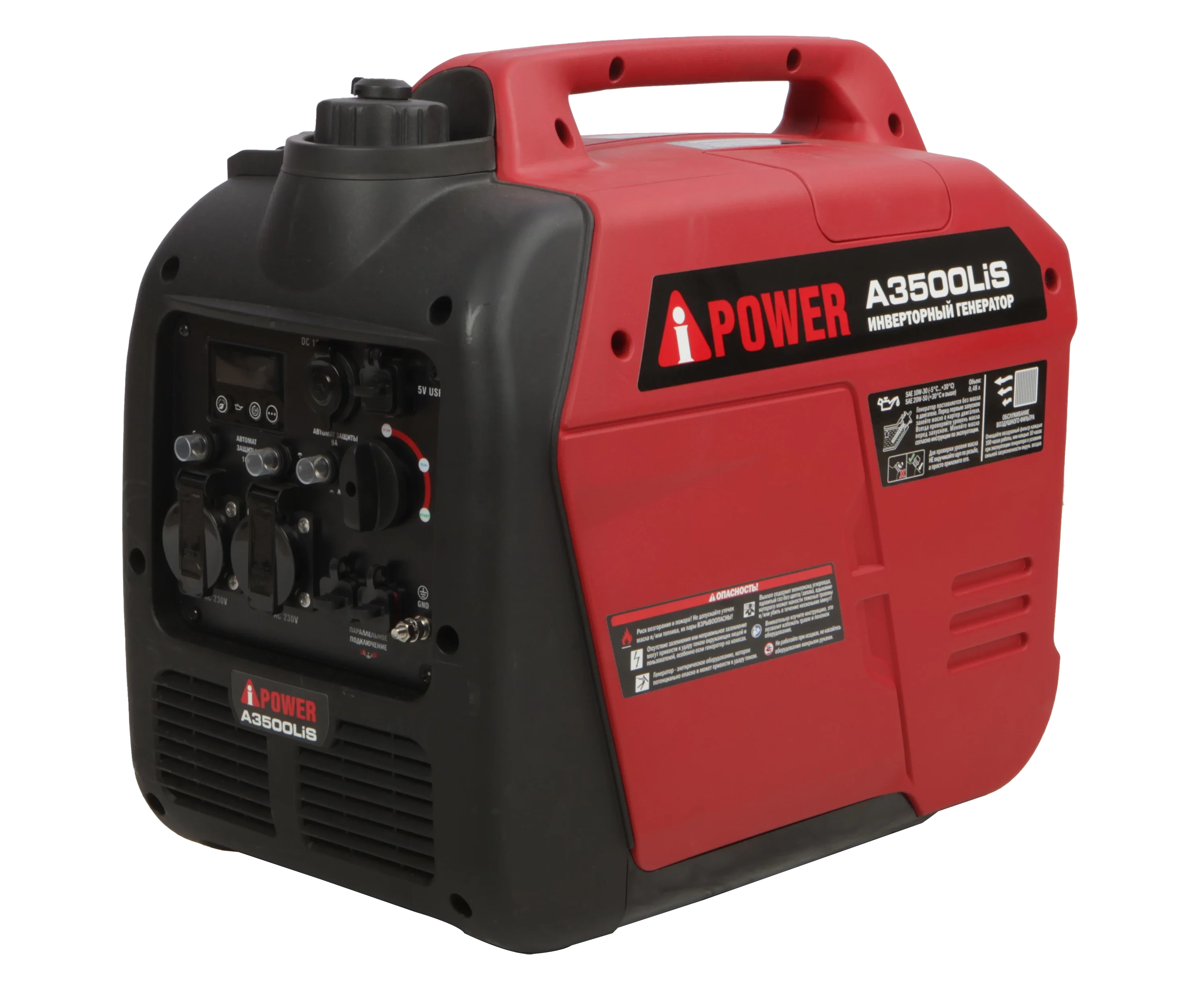 Инверторный бензиновый генератор A-iPower A3500LiS - модель из линейки инверторных генераторов, к которой можно подключить приборы суммарной мощностью 3,5 кВт.