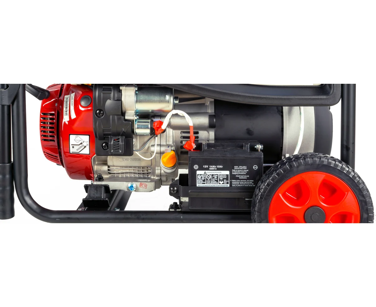Генератор поддерживает как ручной, так и электростартер, что упрощает его запуск. Вместительный топливный бак объемом 25 литров позволяет работать продолжительное время без необходимости частой дозаправки. Генератор оснащен колесами и ручками для удобства транспортировки, а также индикатором уровня топлива для контроля за его остатком.