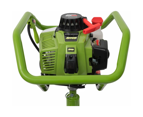 Максимальный диаметр бура составляет 300 мм, что делает его подходящим для различных задач. Устройство оснащено 2-тактным двигателем, который развивает до 8800 оборотов в минуту, обеспечивая стабильную работу. Емкость топливного бака в 1,6 литров позволяет длительное время работать без дозаправки. В комплект входит шнек, что упрощает подготовку к работе.