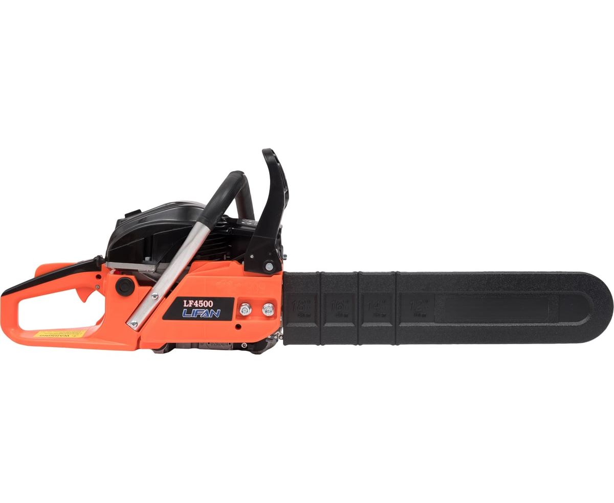 Бензопила LIFAN LF4500 представляет собой надежный инструмент, обладающий мощностью 2.5 лошадиных сил и объемом двигателя 45 см³.