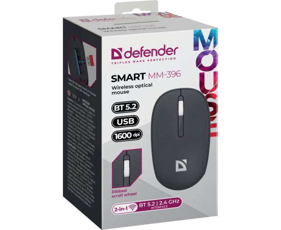 Мышь беспроводная оптическая DEFENDER Smart MM-396 (52396) черный