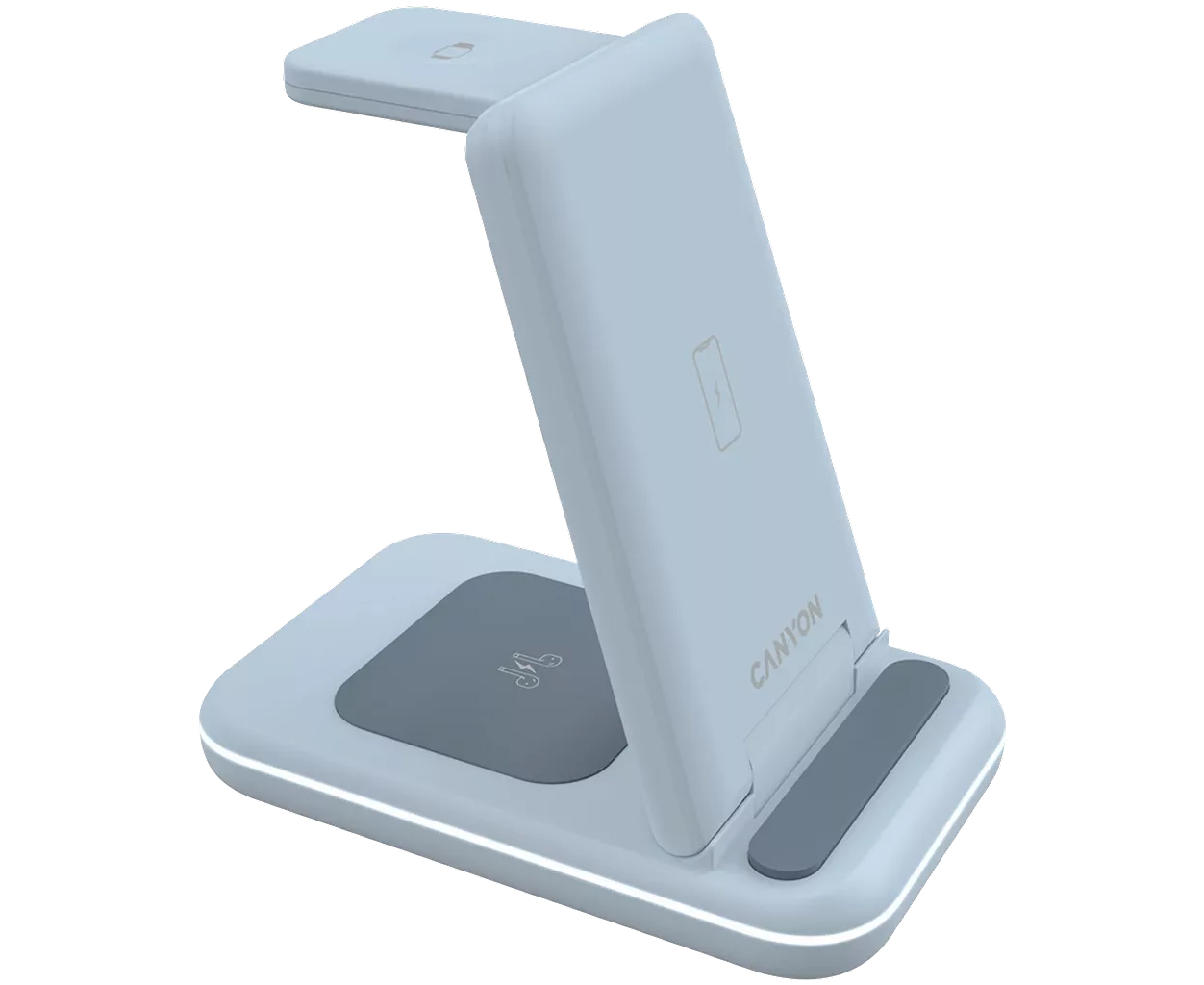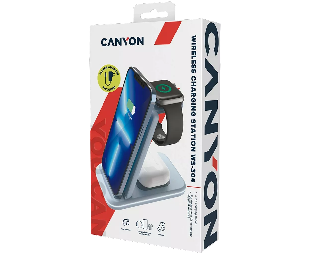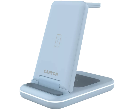 Беспроводное зарядное устройство CANYON CNS-WCS304BL 3-в-1/15W/стандарт QI/IC Chipvision/для iWatch, iPhone, наушников TWS/кабель Type-C 1.2м