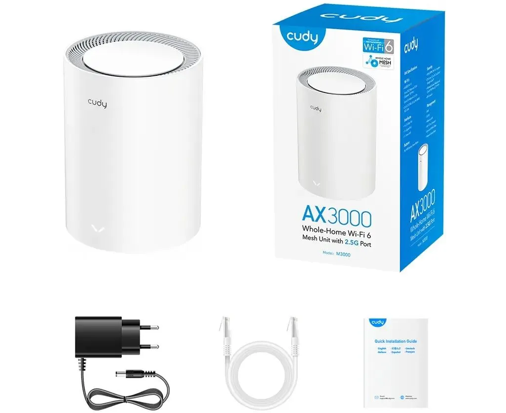 AX3000 Wi-Fi Mesh роутер, адаптер питания, RJ45 Ethernet кабель, руководство быстрой установки