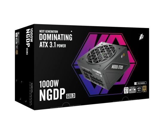 Блок питания 1STPLAYER NGDP Gold (HA-1000BA4) 1000W Black / ATX 3.1, APFC, 80 Plus Gold, LLC+DC-DC, 120mm fan, full modular