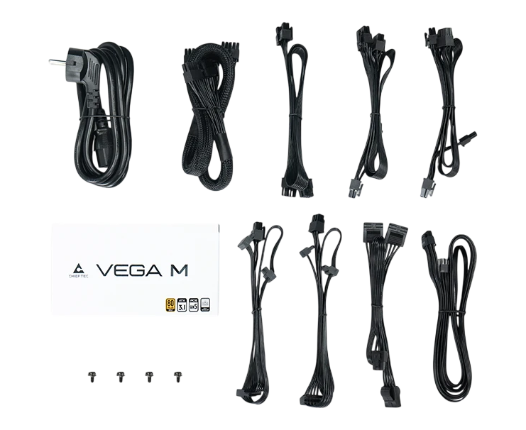Блок питания Chieftec Vega M PPG-1000-C (ATX 3.1, 1000W, 80 Plus Gold, Active PFC, 135mm fan, Gen5 PCIe, Full Cable Management) Retail