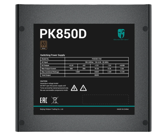 Блок питания Deepcool GamerStorm PK850D (ATX 2.4, 850W, PWM 120mm fan, Active PFC+DC to DC, 80+ Bronzer) RET