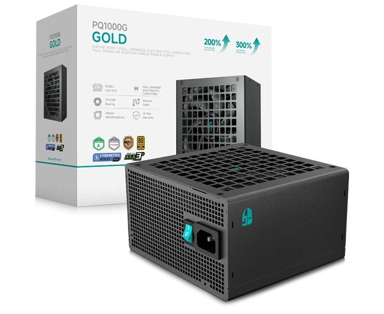 Блок питания Deepcool Gamerstorm PQ1000G (ATX 3.1, 1000W, Full Cable Management, PWM 120mm fan, 80+ Gold, Active PFC + Half Bridge + DC/DC)