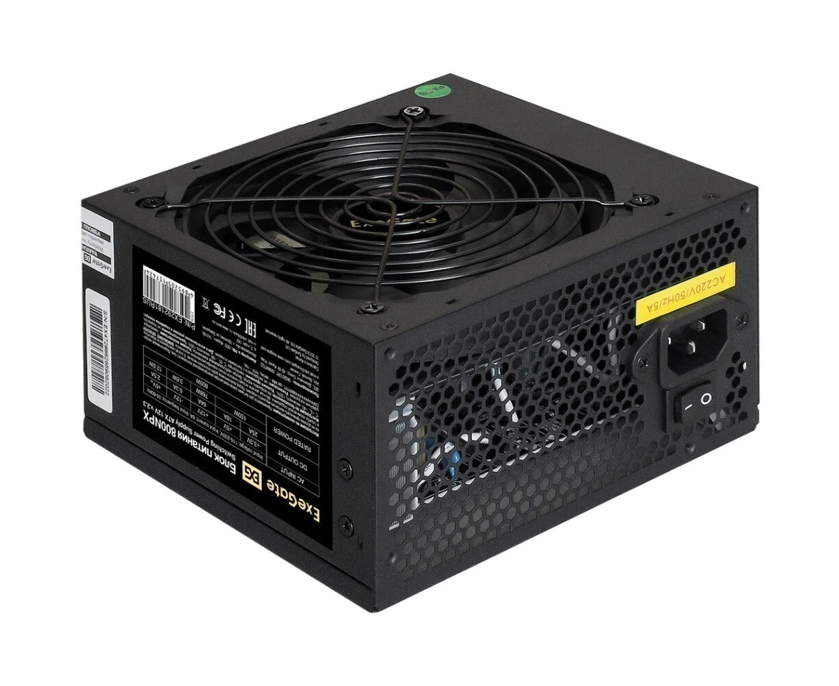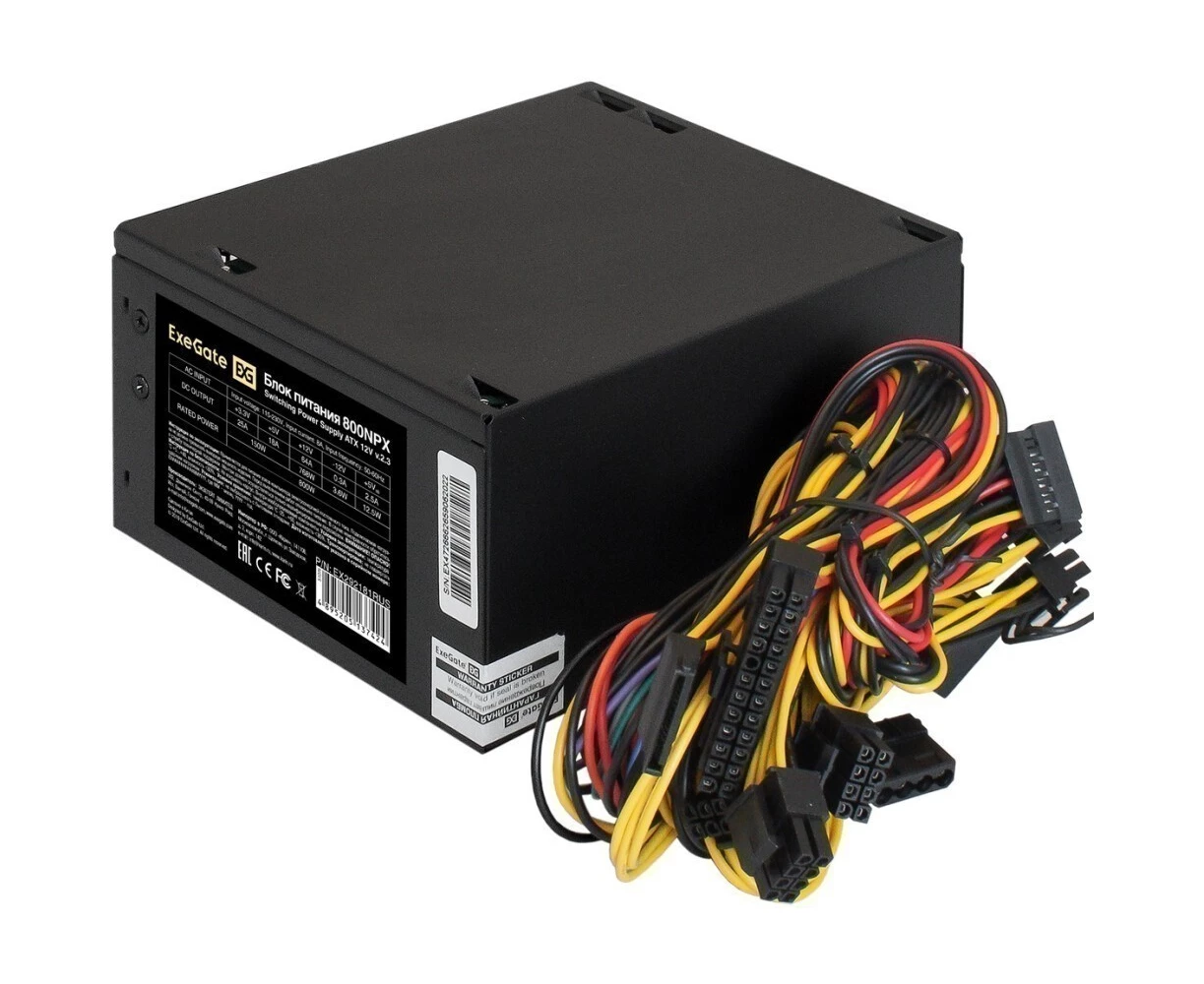 Блок питания ExeGate 800NPX EX292181RUS-PC 800W (ATX, PC, 12cm fan, 24pin, 2x(4+4)pin, 2xPCI-E, 5xSATA, 3xIDE, black)