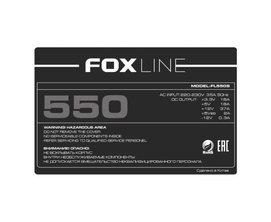 Блок питания Foxline FL550S 550W ATX PSU, 120Fan, 24 pin, 4 + 4 Pin (12V), 5*SATA, 2*4 pin molex, 1*FDD, 1*PCI-e(6 + 2 pin)