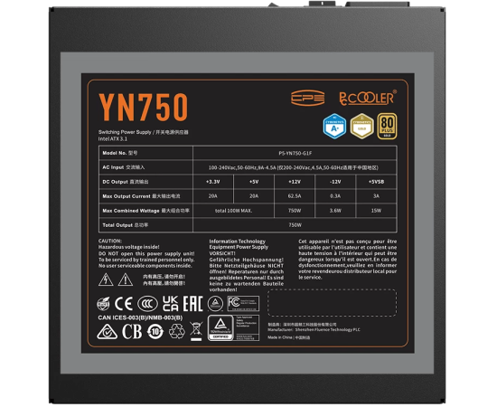 Блок питания PcCooler P5-YN750-G1F 750W 80+ Gold ATX, 3.1, PCIe 5.1 600W, Full modular, 1x24(20+4)pin 550mm, 2xCPU 8(4+4)pin 650mm