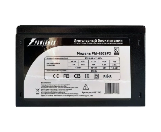 Блок питания Powerman PM-450SFX (6151742) 450W 80+ (8cm fan)