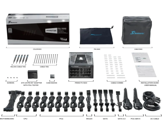Блок питания Seasonic Prime PX-1600 Gen.5 (px-1600 ssr-1600pd2), 1600Вт, 135мм, черный, retail