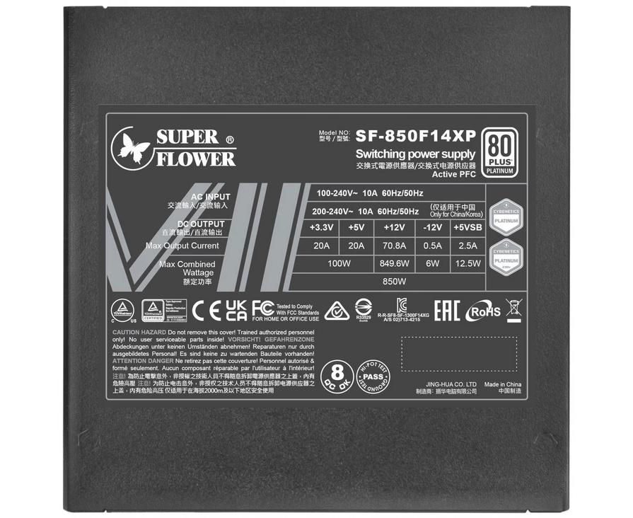 Блок питания Super Flower Power Supply Leadex VII (SF-850F14XP), 850W, ATX 3.0, 140mm, 12xSATA, 3xPCI-E(6+2), 1x12VHPWR, APFC, 80+ Platinum