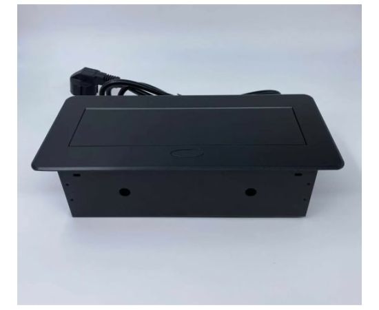 При нажатии на кнопку на лицевой части розетки, происходит плавное открытие. Качественная порошковая окраска корпуса позволяет долгое время сохранить внешний вид нового изделия. Данная модель готова к эксплуатации вся внутренняя разводка уже сделана на заводе, в комплекте с сетевым шнуром длиной 1.8 м, необходимо только подключить изделие к розетки.