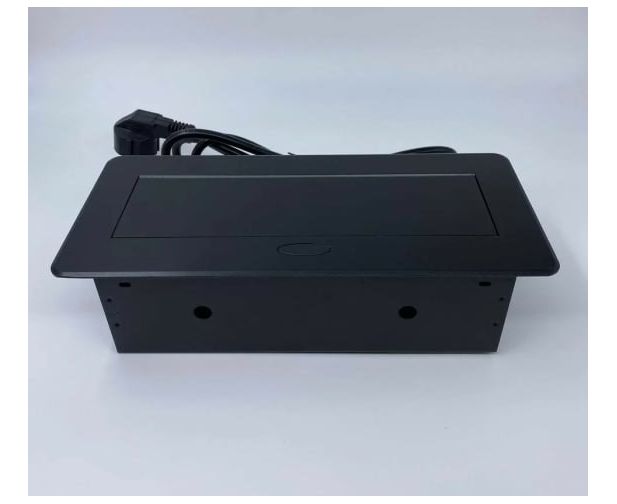Выдвижной встраиваемый блок розеток Inrior выдвижная розетка, на 2 EURO розетки и 2 USB-A+C, черный, TORO-33-20 полностью в сборе: с внутренней проводкой, с металлической монтажной коробкой, проводом 1.8 м с вилкой. Врезное отверстие - 225х108 мм.