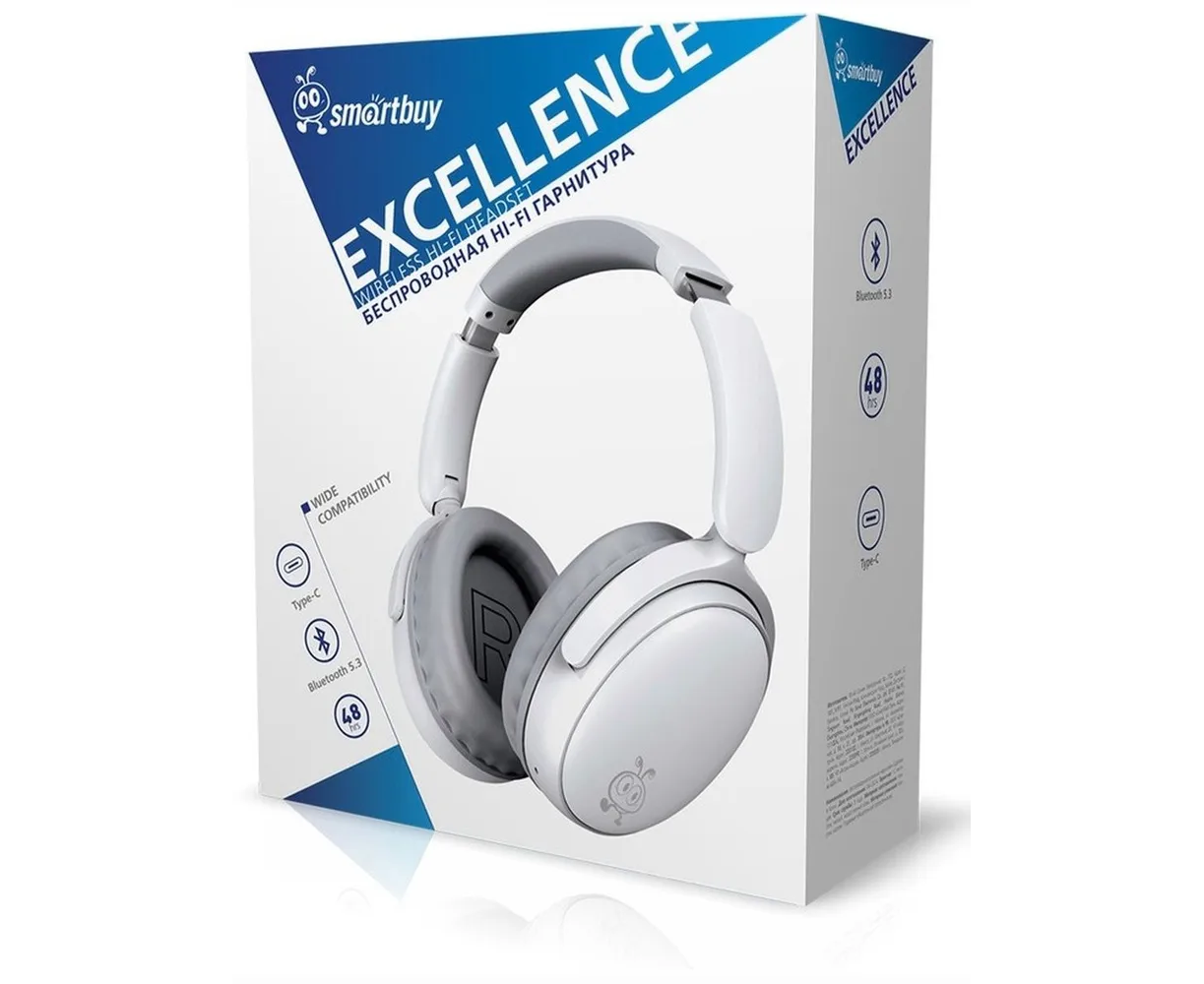 Bluetooth-гарнитура Smartbuy SBH-913 Excellence складная конструкция, Type-C, белая