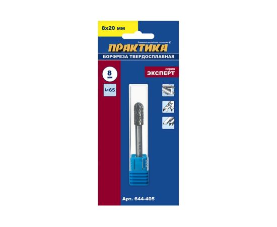 Борфреза твердосплавная Практика тип C цилиндрическая с закруглением (644-405) 8 х 20 мм, хвостовик 6 мм