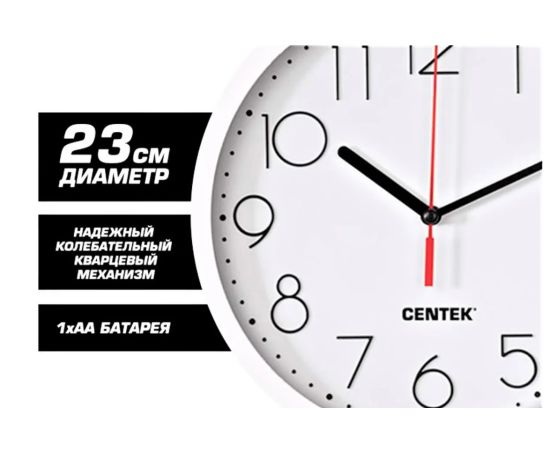 Настенные часы CENTEK White подойдут к любому интерьеру.