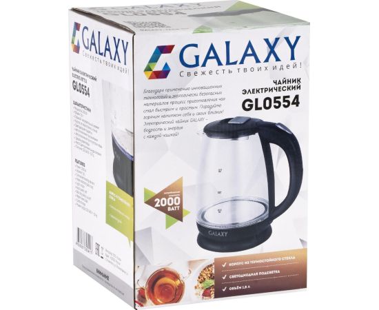 Чайник Galaxy GL 0554 1,8л, стекло, 2000Вт