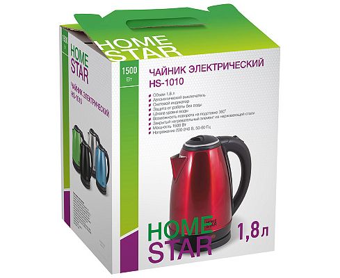 Чайник HomeStar HS-1010 1.8 л, стальной, красный 003014 используется в бытовых целях.