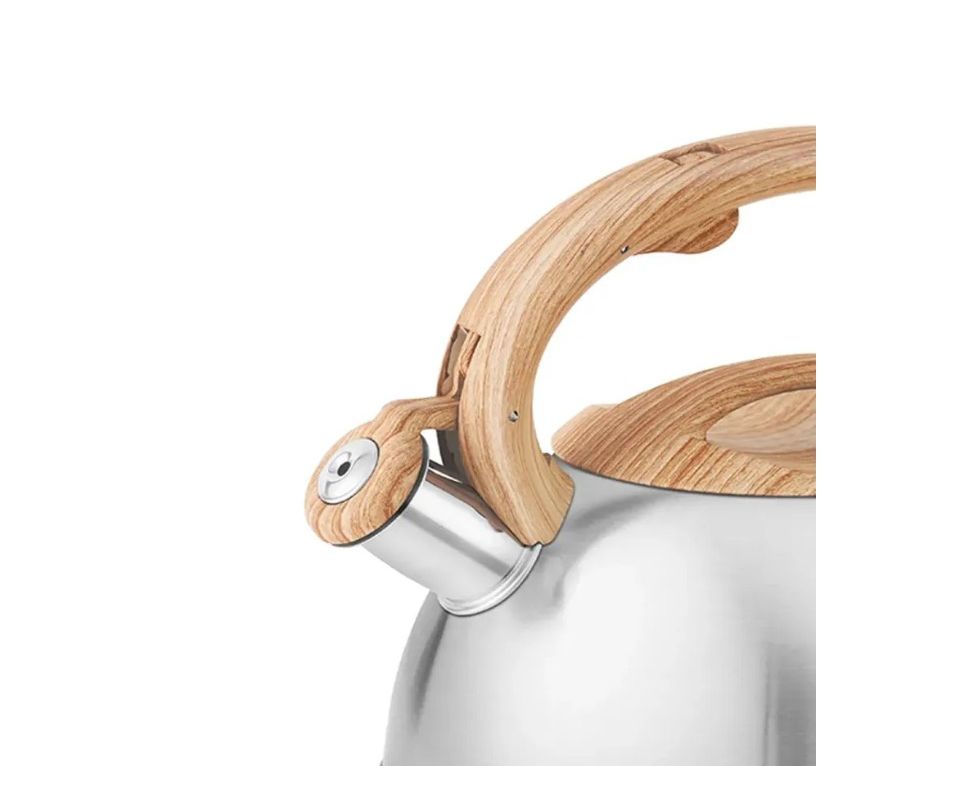 Чайник со свистком ZEIDAN Z-4546 объемом 3,0 литра изготовлен из прочной нержавеющей стали, что обеспечивает долговечность и устойчивость к коррозии. Оснащен индукционным капсулированным дном, которое быстро и равномерно нагревается на любой плите, включая индукционные. Курковый механизм позволяет легко открыть крышку одной рукой, делая процесс закипания воды максимально удобным. Фиксированная ручка с мягким покрытием soft-touch «под дерево» обеспечивает надежный захват и комфорт при использовании, предотвращая риск ожогов и скольжения. Стильный дизайн и практичные функции делают этот чайник отличным помощником на любой кухне. Объем 3 литра идеально подходит для приготовления большого количества горячей воды для семьи или гостей. Высокое качество материалов и современные технологии производства гарантируют долговечность и безопасность эксплуатации.