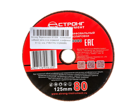 Черепашка АГШК - алмазный гибкий диск для влажной шлифовки Strong СTБ-31200080 D 125 мм, P 80