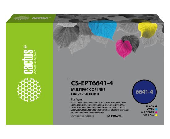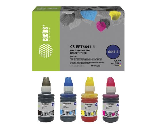 Чернила Cactus CS-EPT6641-4 T664 многоцветный набор 4x100мл для Epson L100/L110/L120/L132/L200/L210/L222/L300/L312/L350/L355/L362/L366/L456/L550/L555/