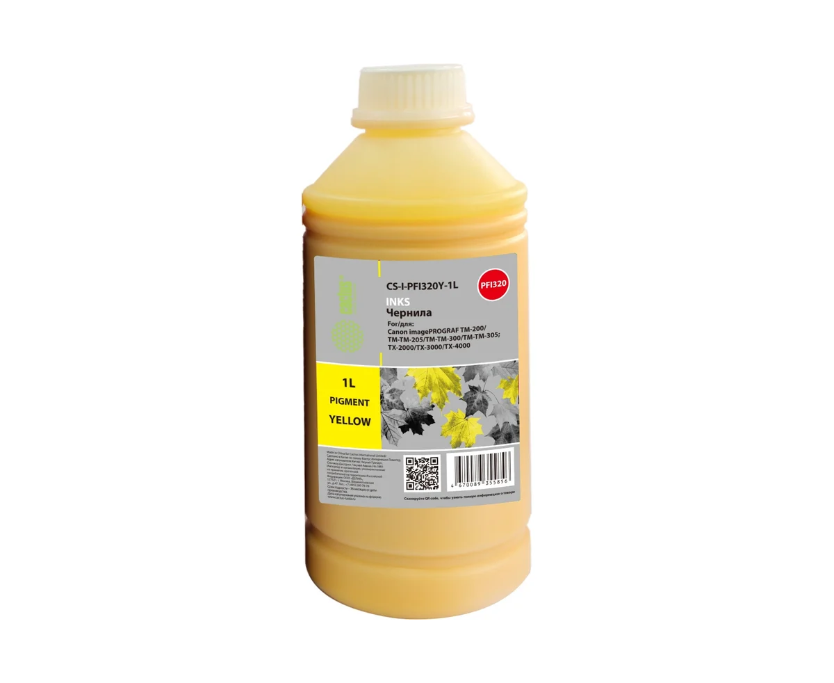 Чернила Cactus CS-I-PFI320Y-1L PFI-320/120 желтый1000мл для Canon imagePROGRAF TM-200/TM-205/TM-300/TM-30